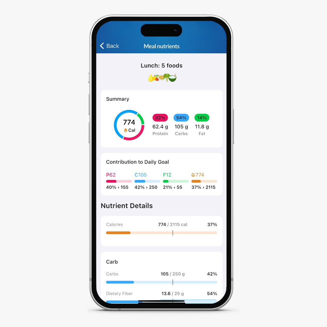 The Meal Nutrients Report gives you a detailed nutrient breakdown at the meal level, allowing you to see exactly how each meal contributes to your daily nutrition. Instead of only viewing daily totals, you can better understand which meals are driving specific nutrients, compare meals throughout the day, and fine-tune meal composition to better support your goals.